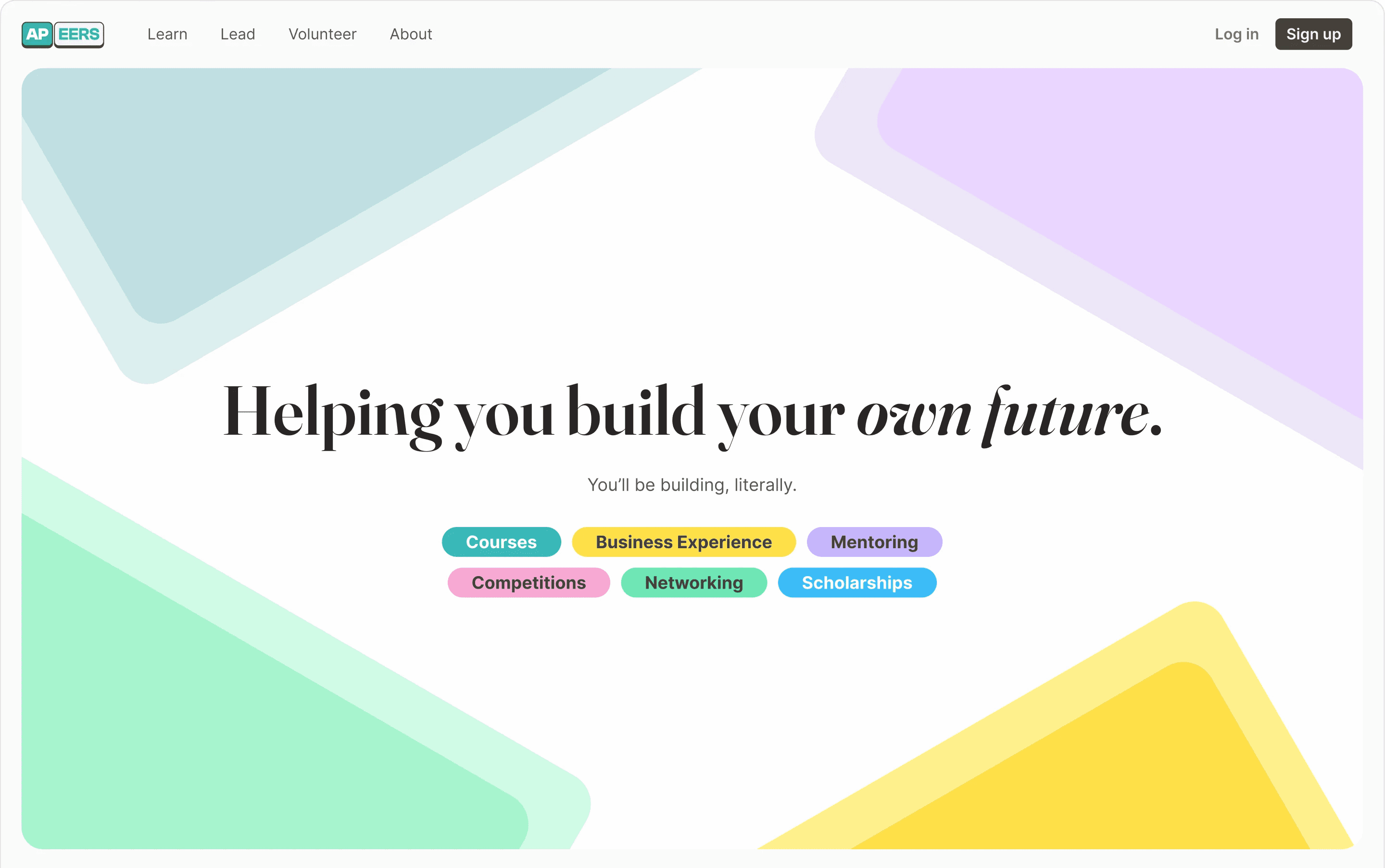 work on landing page & website for peer tutoring organization APEERS // designed in Figma