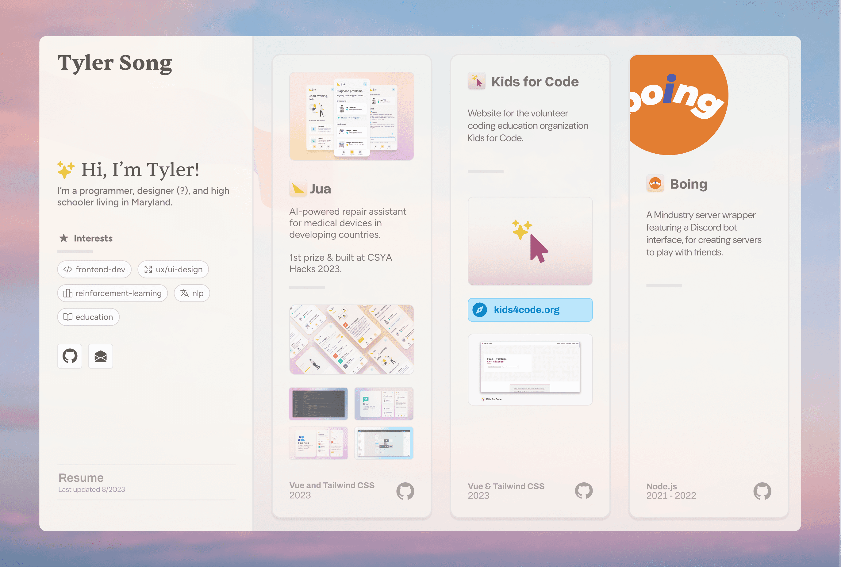 I'm especially interested in the intersection of design and code, and building things that are both functional and beautiful.