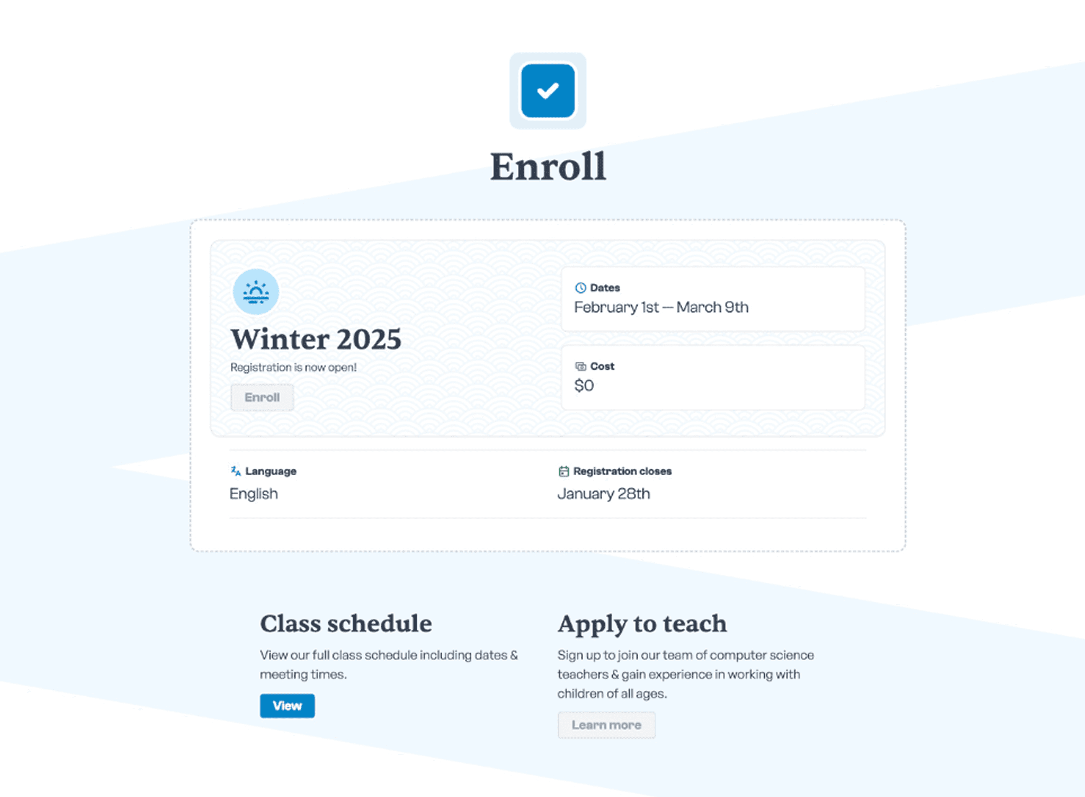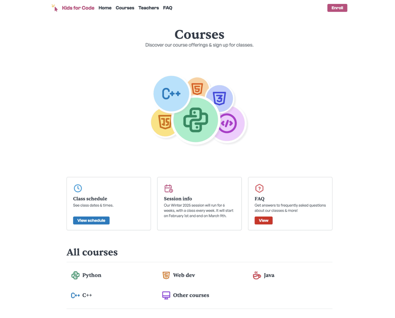 Let's take a look at arguably the second most important page, the Courses page listing all of our class offerings.