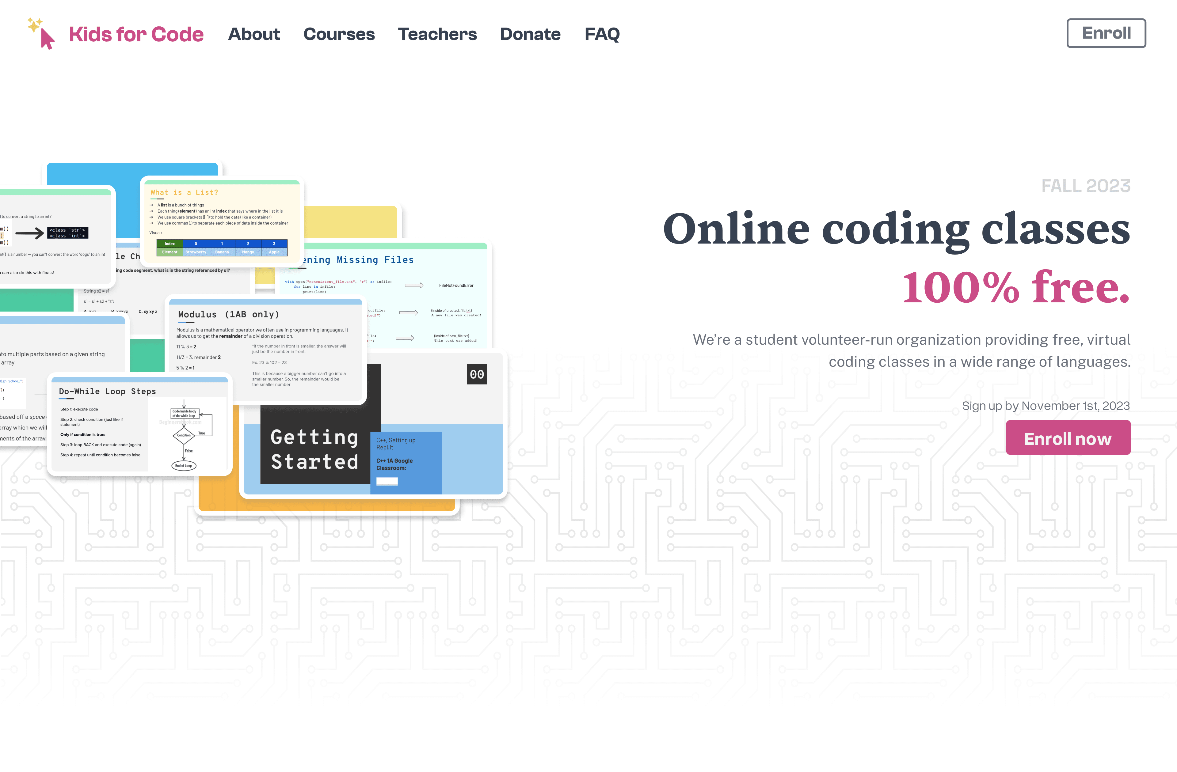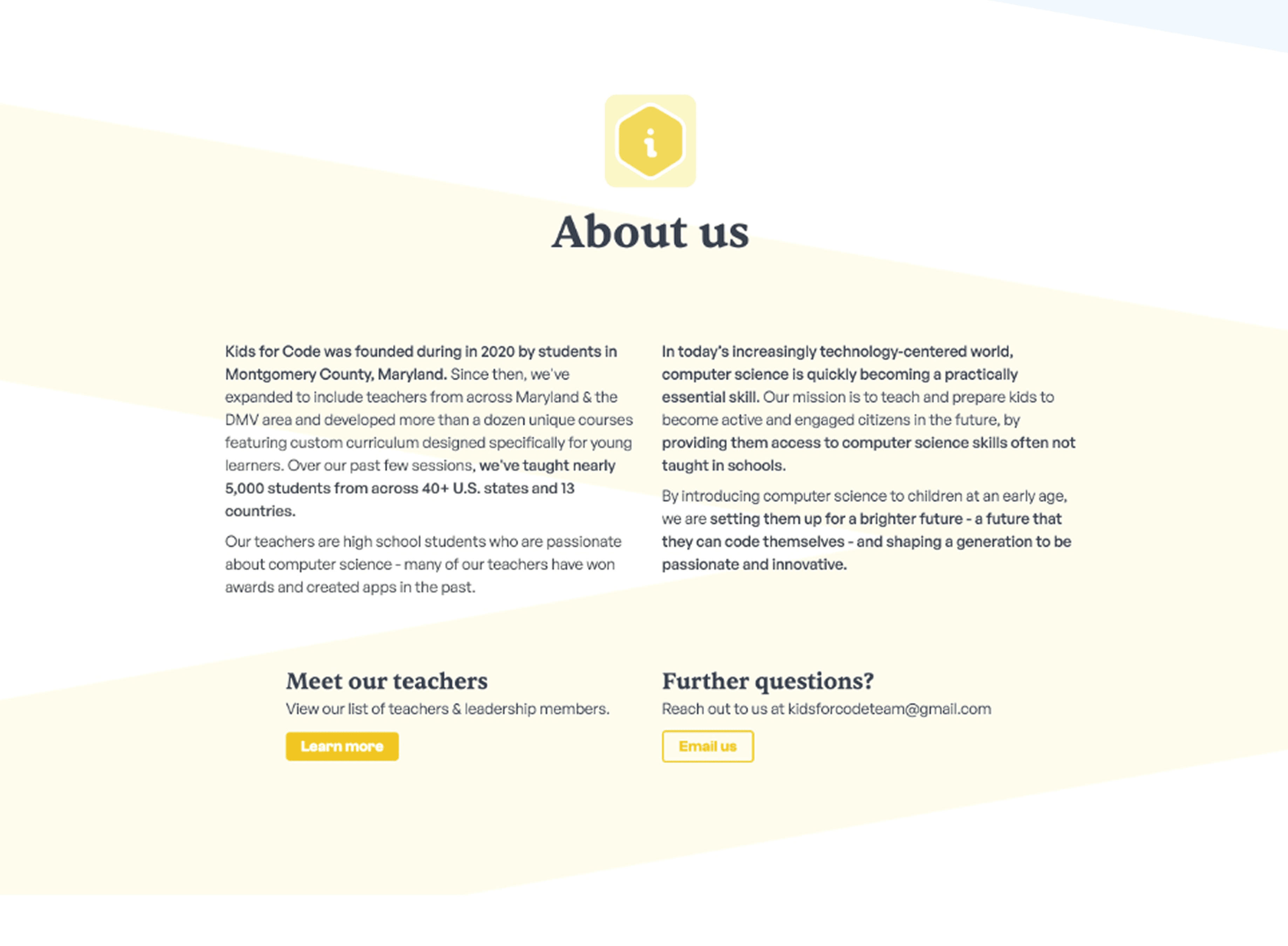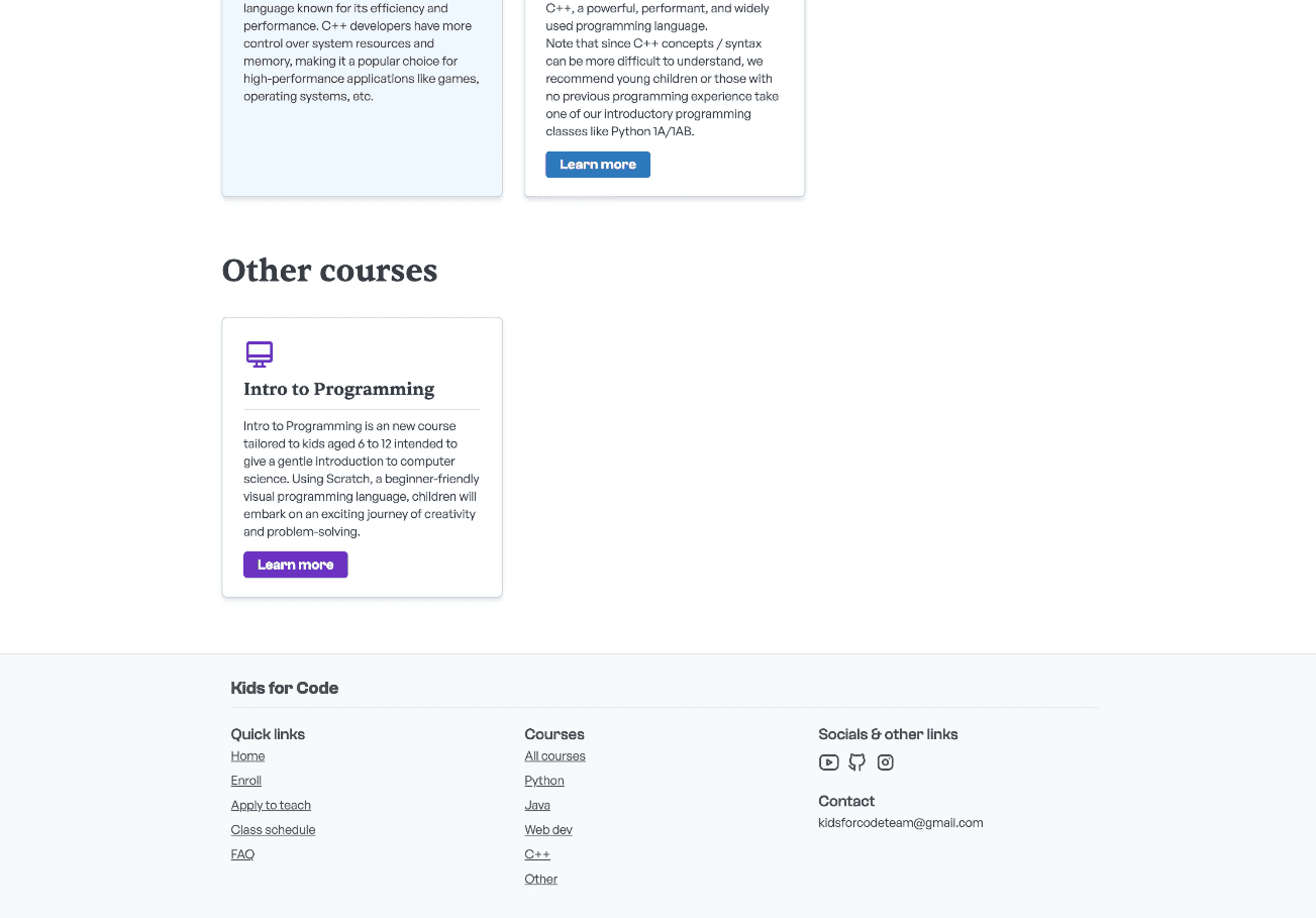 In early 2024, I started building a new website for Kids for Code, the coding education nonprofit I joined a few years ago on a whim—mostly because a friend asked me to. I was really surprised by how much I enjoyed it! I ended up really enjoying the feeling of satisfaction from teaching others, and I've stayed on for the past 3 years.