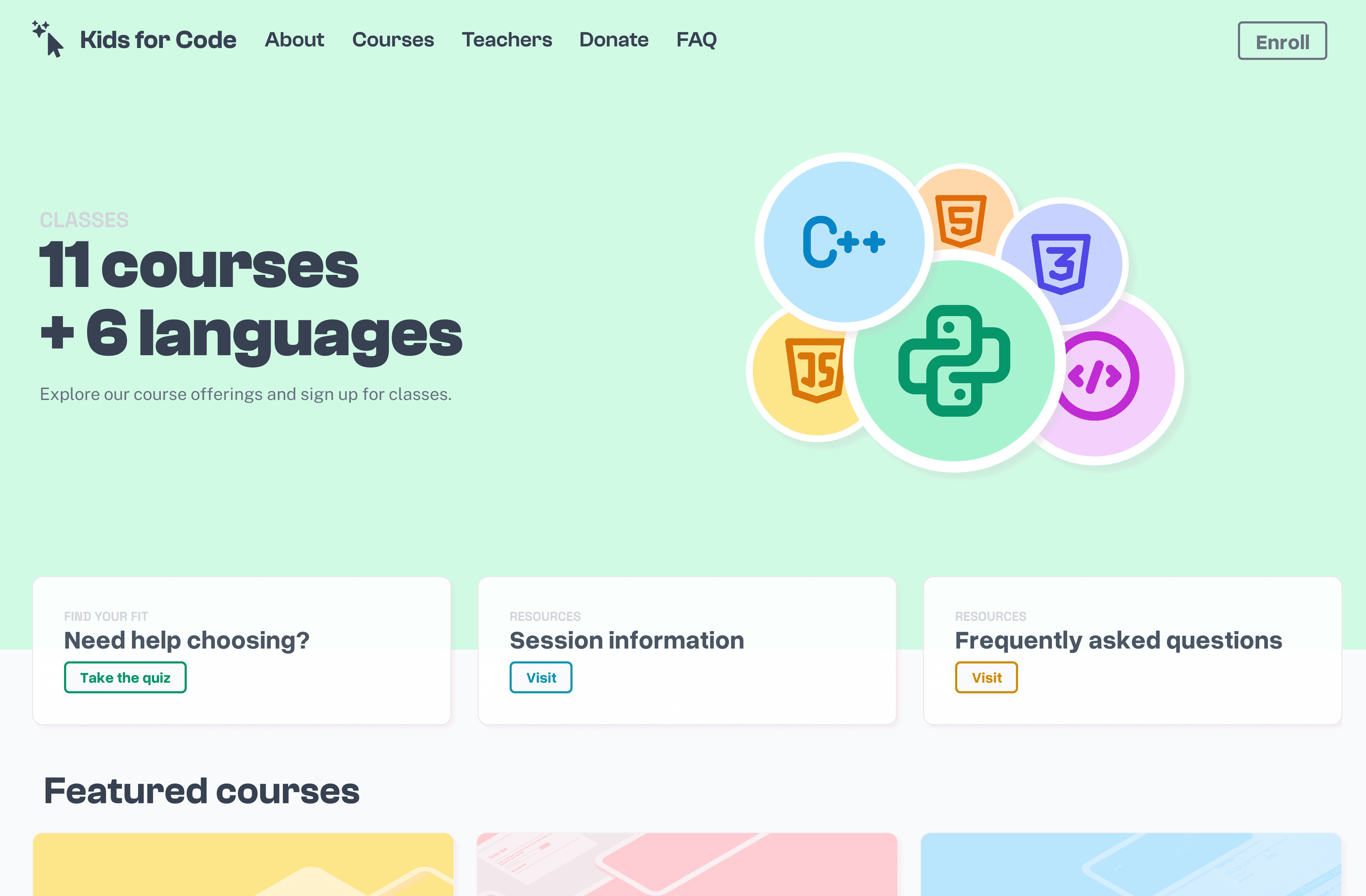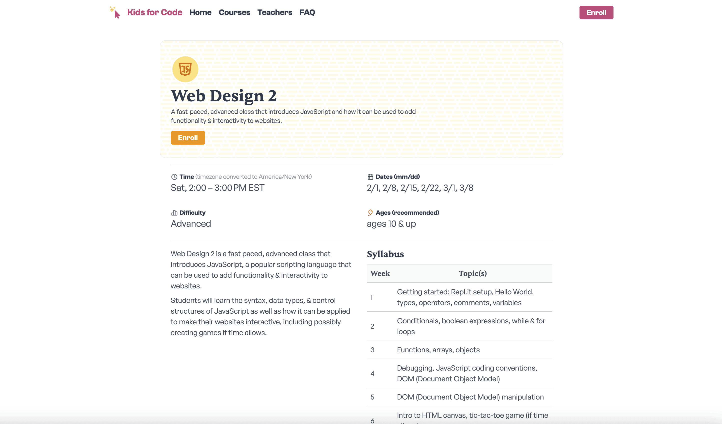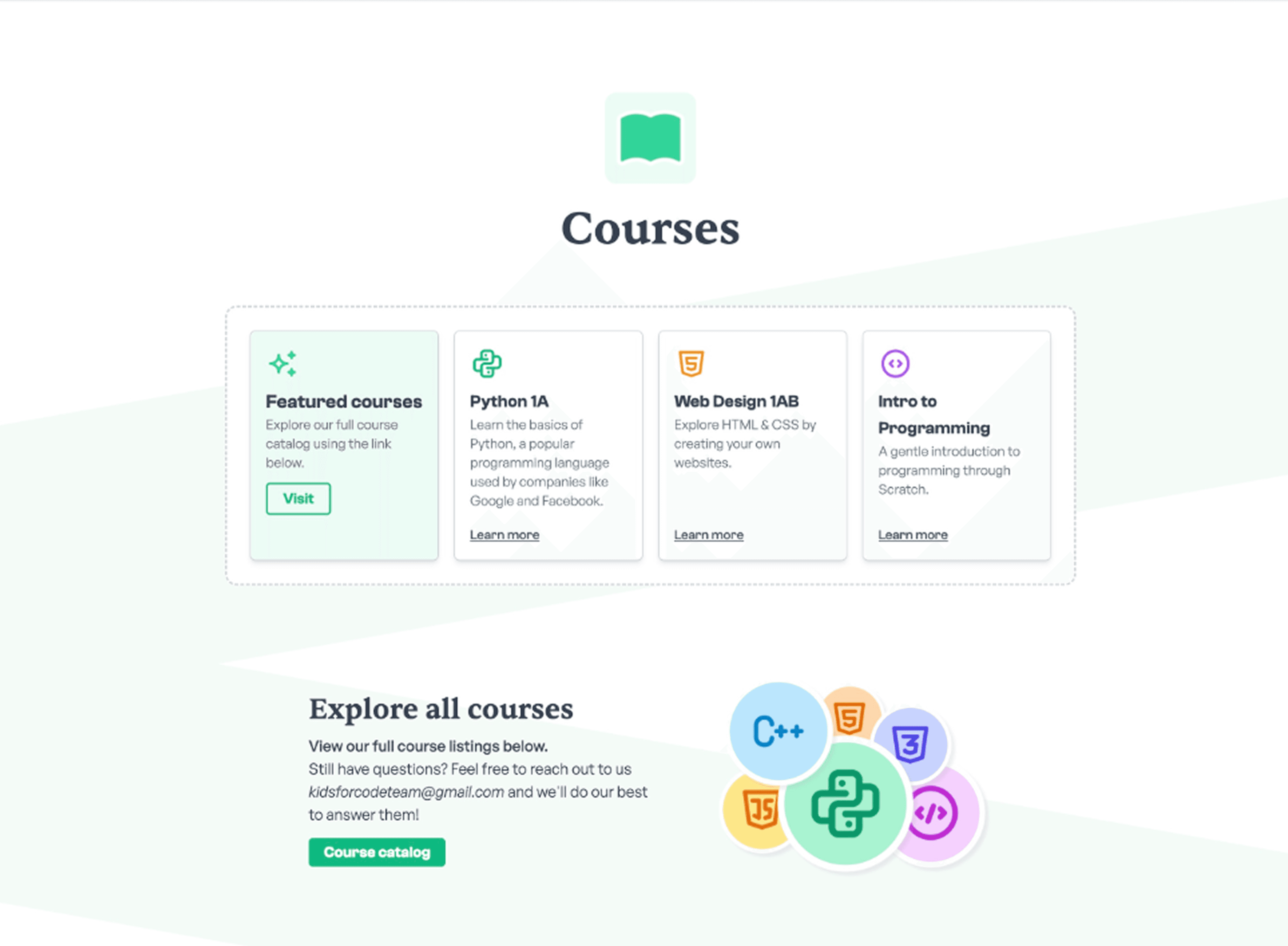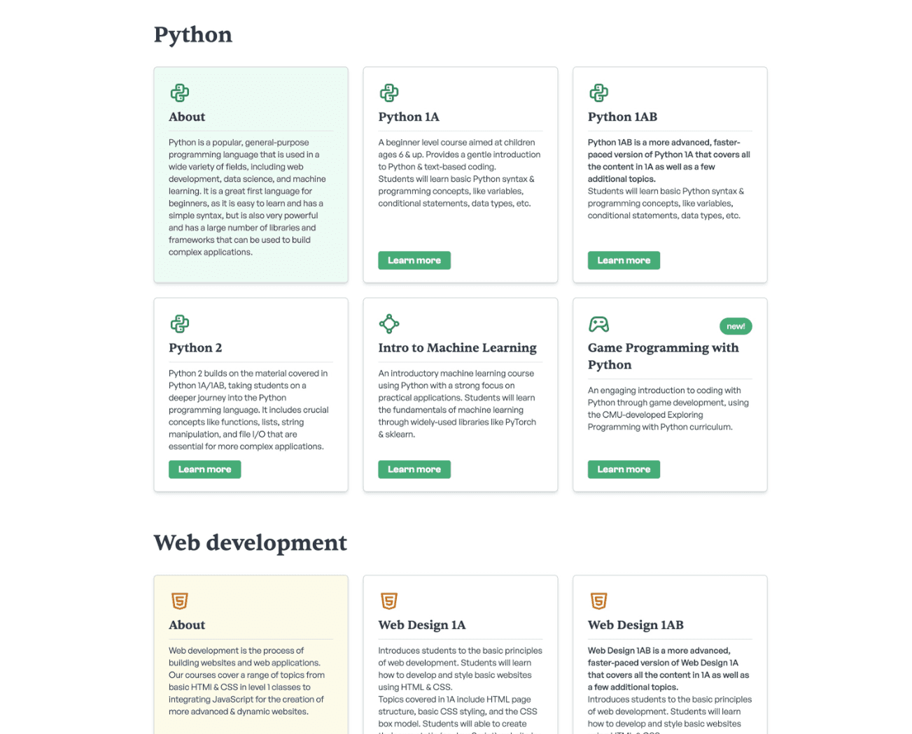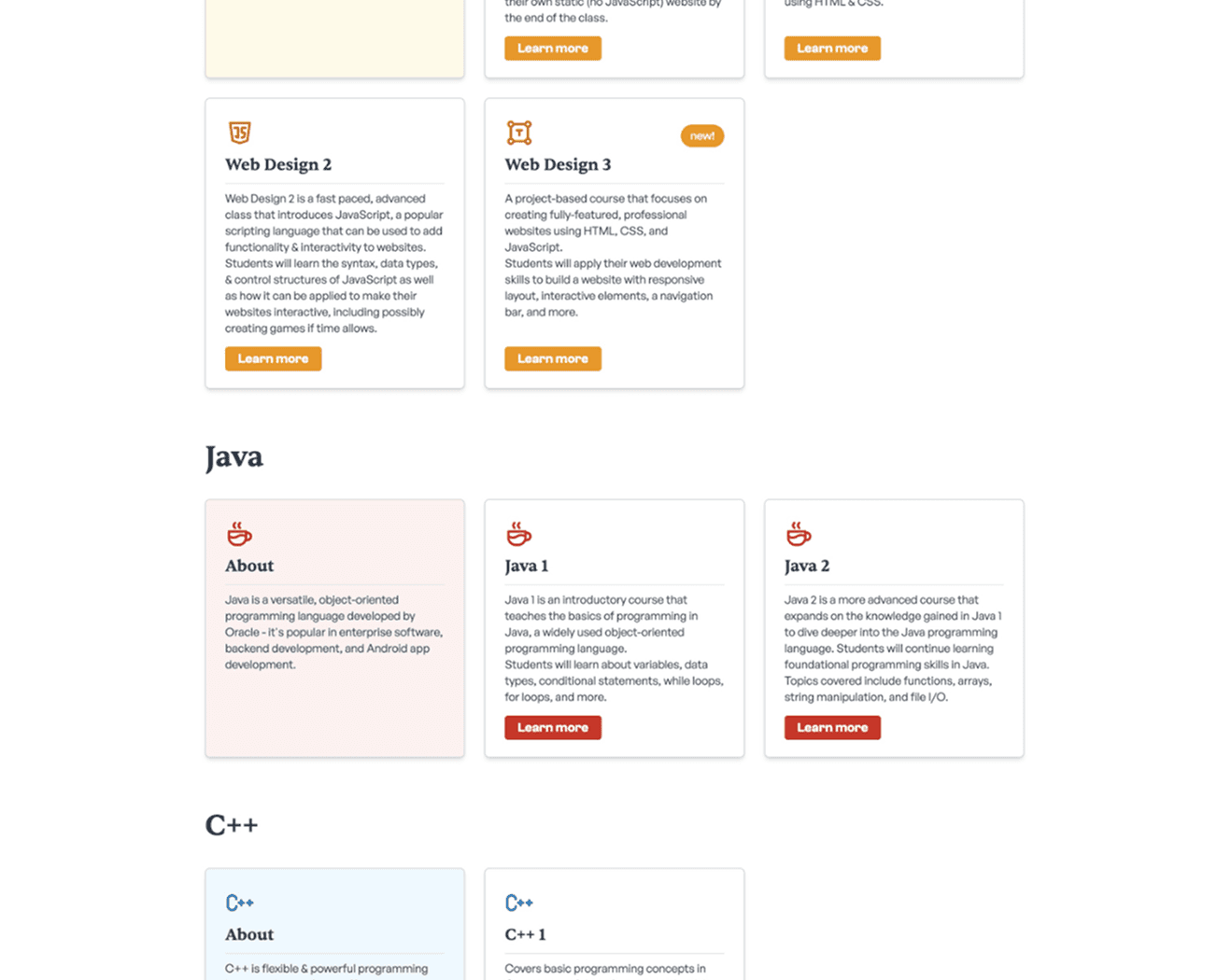 Going into this site redesign, my main goal was to help drive enrollment, especially for some of our smaller classes, like C++ 1 or Intro to UI Design, with a secondary goal of polishing our online presence for a more cohesive and professional look that still maintained a kid-friendly and playful spirit.