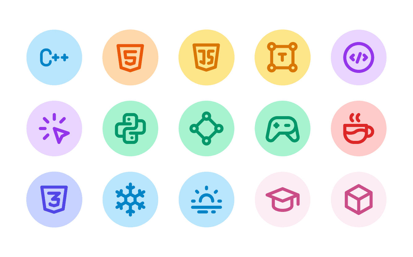 For example, each course has their own background & icons. The thick white border around each icon was meant to represent a sticker (I was inspired by the really well-designed Sketch website for this—unfortunately they've redesigned since then though).